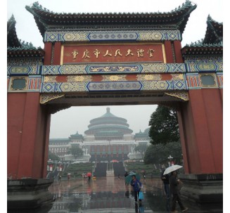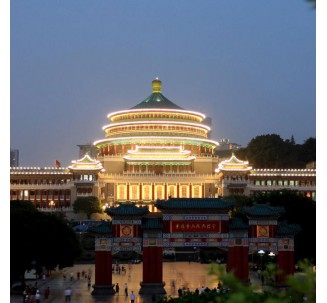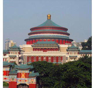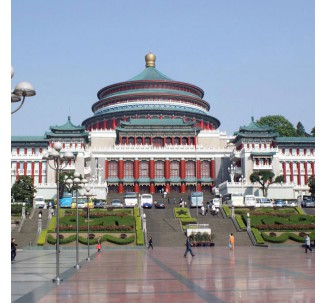 大礼堂1951年6月动工,1954年4月落成,建筑总高度为65米,内有五层,现用四层,可容观众4206人。大礼堂采用了明清两代的建筑特色,其主要特点就是采用中轴线对称的传统办法,配以柱廊式的双翼,并以塔楼收尾,立面比例匀称。这类建筑华丽、庄严,虽不完全实用,但它给人一种精神上的凝聚力和威慑力,是建筑结构中最高等级的代表,是继北京和沈阳故宫后的精美奇巧的东方建筑。