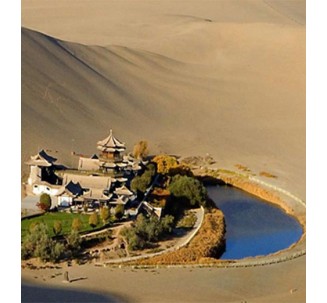 月牙泉是一处神奇的漫漫沙漠中的湖水奇景。鸣沙山下,泉水形成一湖,处在沙丘环抱之中。泉在流沙中,干旱不枯竭,风吹沙不落,蔚为奇观。月牙泉位于敦煌市西南5公里处。自汉朝起即为“敦煌八景”之一,弯曲如新月,因而得名,有“沙漠第一泉”之称。 月牙泉是一处神奇的漫漫沙漠中的湖水奇景。鸣沙山下,泉水形成一湖,处在沙丘环抱之中。泉在流沙中,干旱不枯竭,风吹沙不落,蔚为奇观。相传泉内生长有铁背鱼、七星草,专医疑难杂症,食之可长生不老,故又有“药泉”之称。 据说,月牙泉早在汉代就是游览胜地。