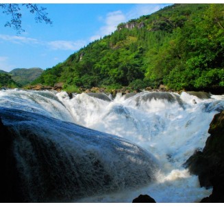 黄果树风景名胜区位于贵州省西南部,被中国国家地理杂志社评为“中国最美丽的地方”。 景区以黄果树瀑布景区为中心,分布有天星桥景区、陡坡塘景区、滴水滩瀑布景区等几大景区。 黄果树大瀑布是黄果树瀑布群中最为壮观的瀑布,是世界上唯一可以从上、下、前、后、左、右六个方位观赏的瀑布,也是世界上有水帘洞自然贯通且能从洞内外听、观、摸的瀑布。景观变幻无穷,是为一绝。 在瀑布上游和下游,由18个雄奇险秀、风格各异的瀑布组成黄果树瀑布群,有落差高达410米的滴水滩瀑布,有瀑面宽达110米的陡坡塘瀑布,有滩面长达350米的螺丝滩瀑布及形态秀美的银练坠潭瀑布等,是天然的“瀑布博物馆”。 【景点介绍】 数生步是进入天星桥的第一个景点,脚下的石头散落在水中,形成了365块跳蹬,正好暗合了一年的周期,它韵含了世界上每个人的生日,你可以从第一个跳蹬开始数,因为每个跳蹬上都刻有日期,当数到您生日的时候,看看四周围的景色,将有美不胜收之感,你可以在这许一个心愿,照相留念。 天星洞曾经是一条地下暗河,后来由于排泄面的降底,流水改道,形成了一个没有水的地下溶洞。天星洞是一个很具观赏价值的溶洞,它由一个大厅和若干侧厅组成,这里景观千奇百怪,洞中石笋、石柱、石花等形态各异、五光十色,最引人注目的景观有鲤鱼跳龙门、八仙过海、美女梳头、石鸡晓唱、苗岭梯田、将军帽等。