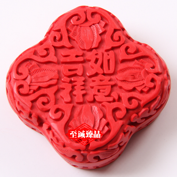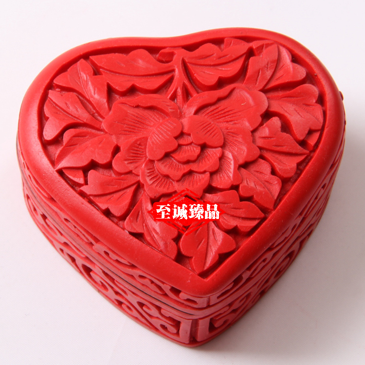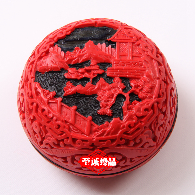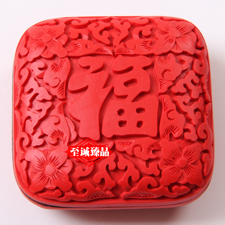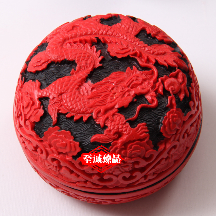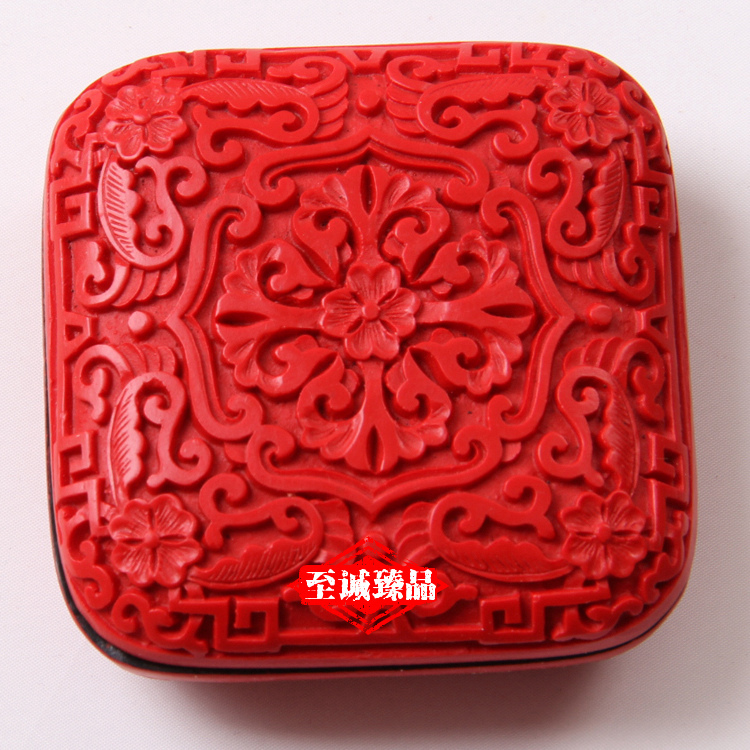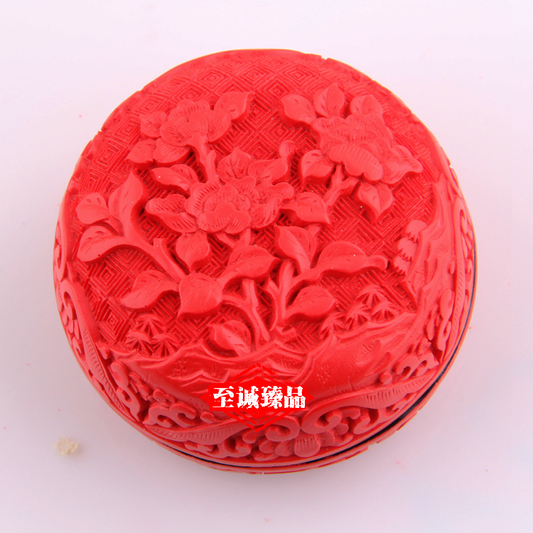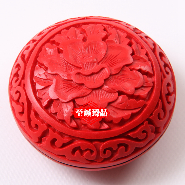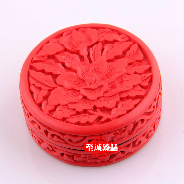 【北京馆】北京雕漆首饰盒3寸牡丹民间雕漆工艺品粉盒送老外中国特色礼品